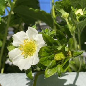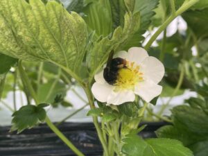 温室の中では、蜂さんが元気に飛び回っていちごの花の受粉をしてくれています。